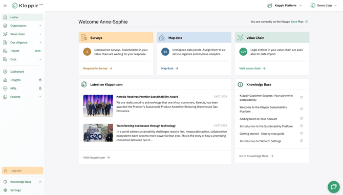 First look into the Klappir Sustainability Platform and the tools you will use to get started on your journey