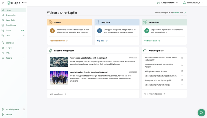 First look into the Klappir Sustainability Platform and the tools you will use to get started on your journey